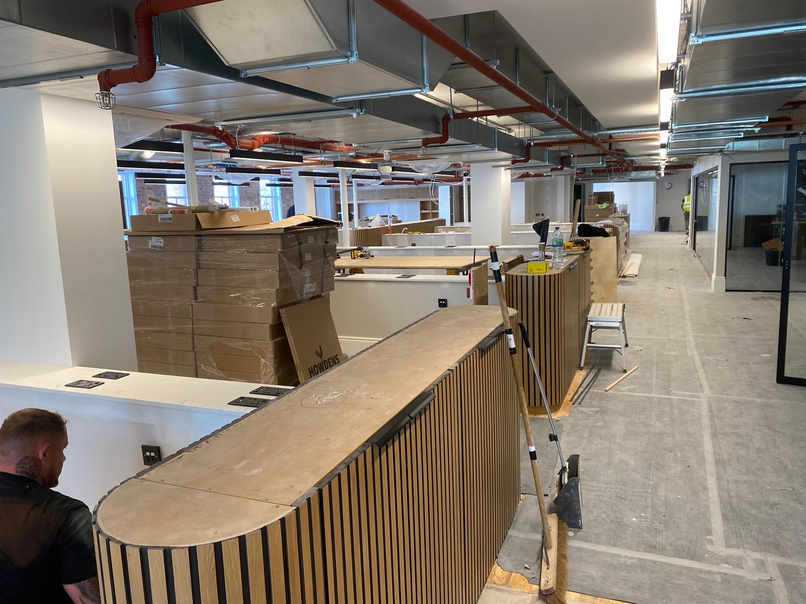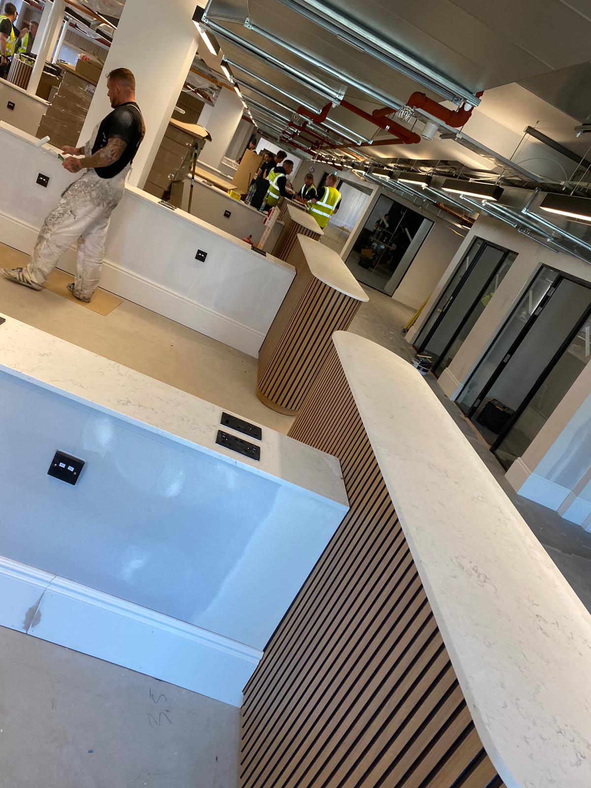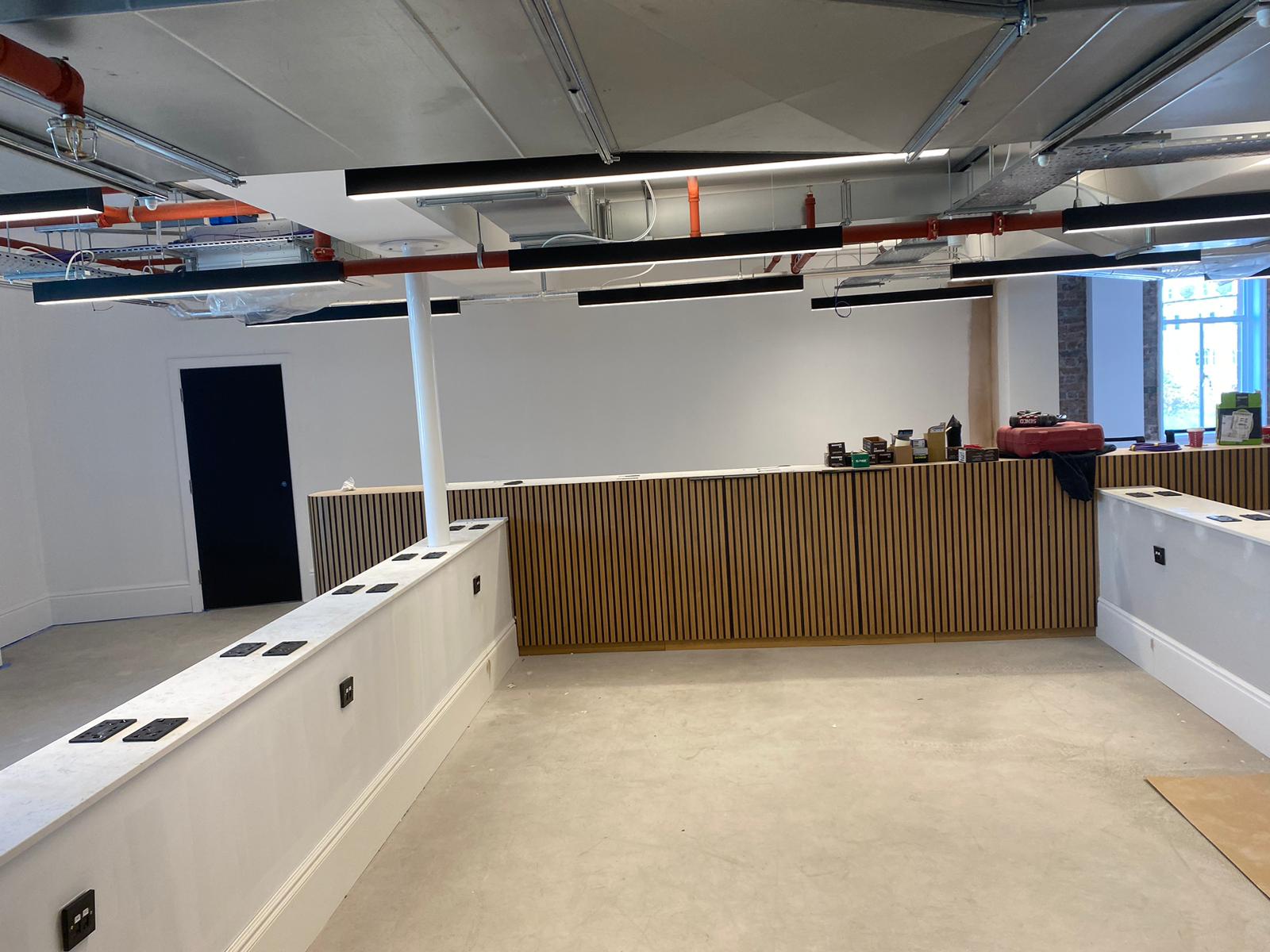 Gozney is a company known for designing and manufacturing high-quality outdoor ovens, particularly for pizza. We formed part of their new head office fit-out with custom room dividers and kitchen worktop installations.